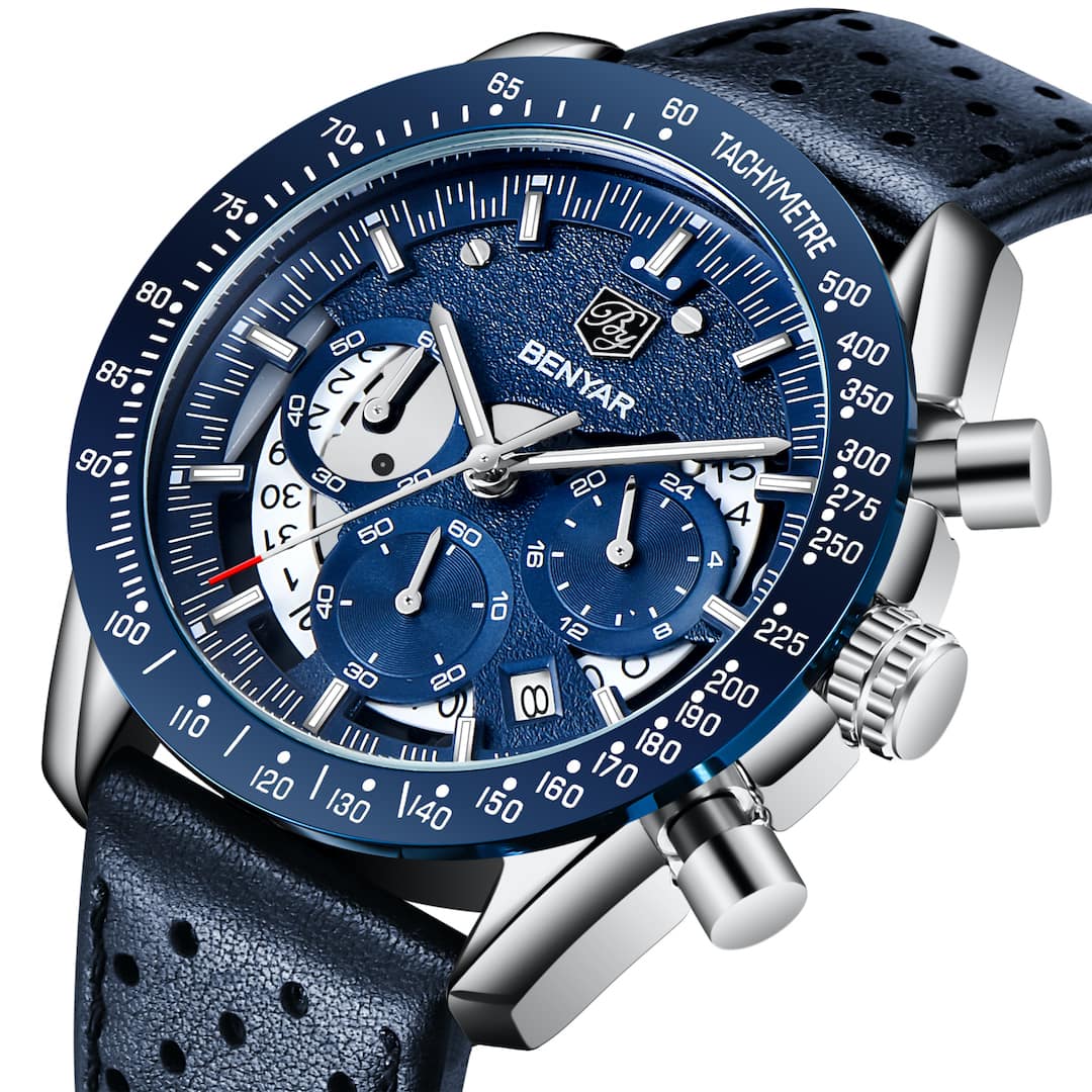 Perché scegliere l’orologio uomo Benyar Tachymetre Leather Blue?