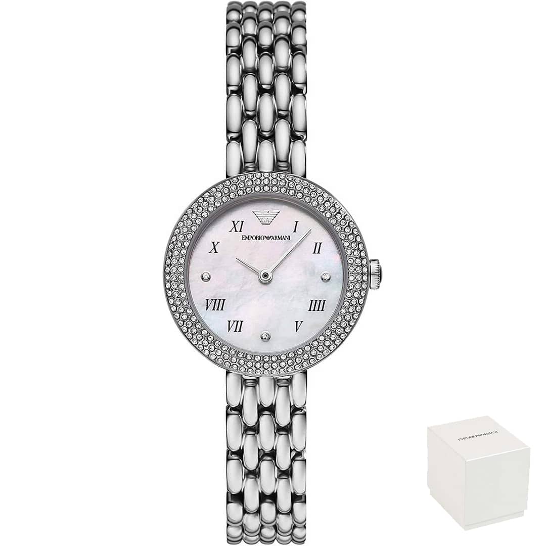 L’orologio donna Emporio Armani AR11354 è un modello elegante e raffinato. È progettato in modo minimalista, ma raffinato. Il quadrante di colore perla e i meravigliosi cristalli sulla cassa dell’orologio sono dettagli impossibili da ignorare. Esprime uno stile moderno, raffinato e glamour, caratteristico di Emporio Armani.
